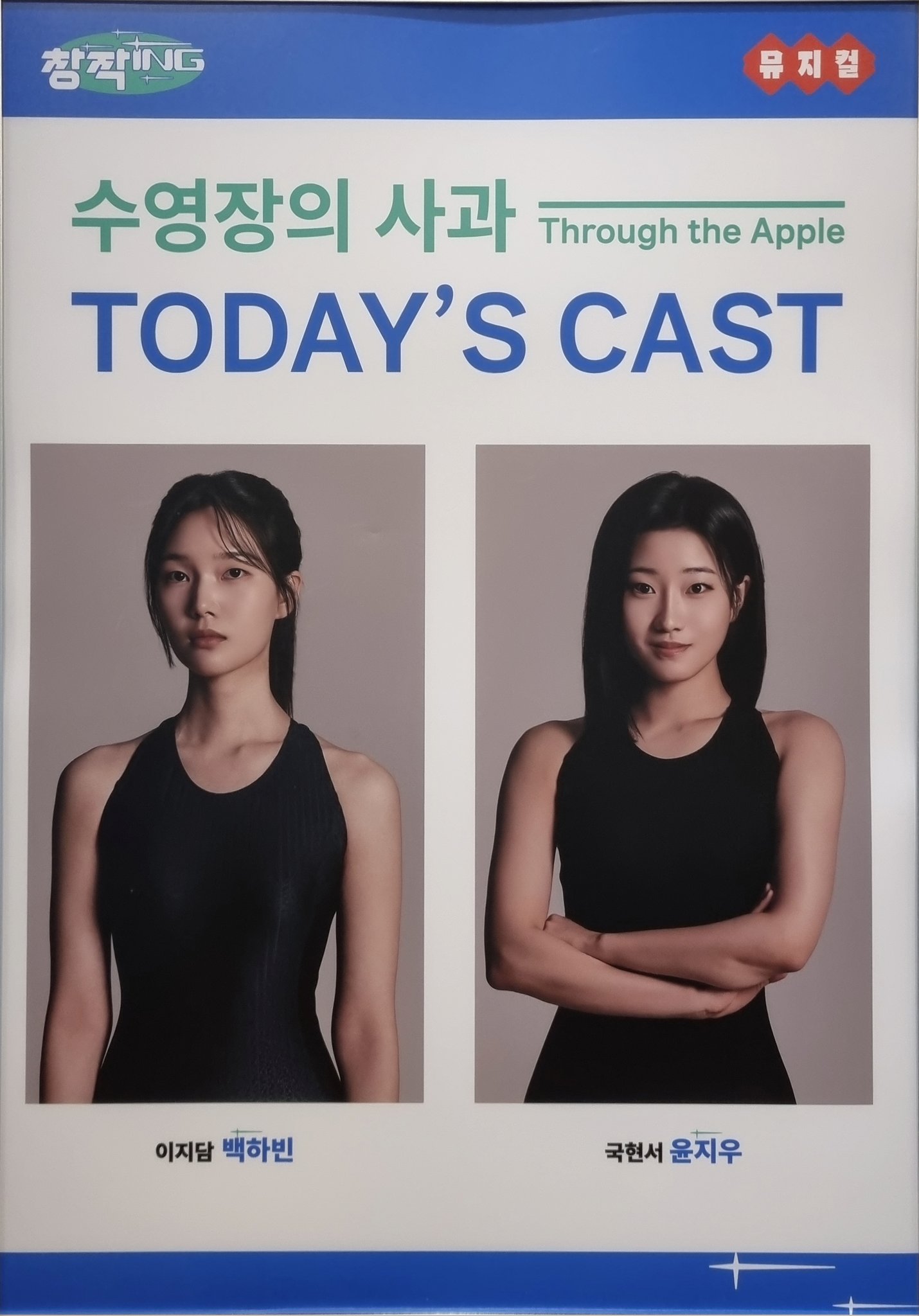 시작부터 수영하는거 몸짓언어로 표현해서 심장개뛰었음. 어깨-팔 쓰는거 개좋아하는 사람인데 수영 표현한다고 극 내내 어깨와 팔을 끊임없이 써서 저는 그만 정신을 잃었습니다. 지우현서가 지쨔지쨔 아니 어깨뭐야 스트레칭할때 한발서기하는 코어 뭐어어야하아아아. 지우현서가 파워풀하게 움직이고 하빈지담은 유연하게 움직임. 처음에 불켜지자 마자 하빈지담의 웨이브에 놀랐음. 접영할떄 물속에 들어갔다 나오는 동작 같아서.